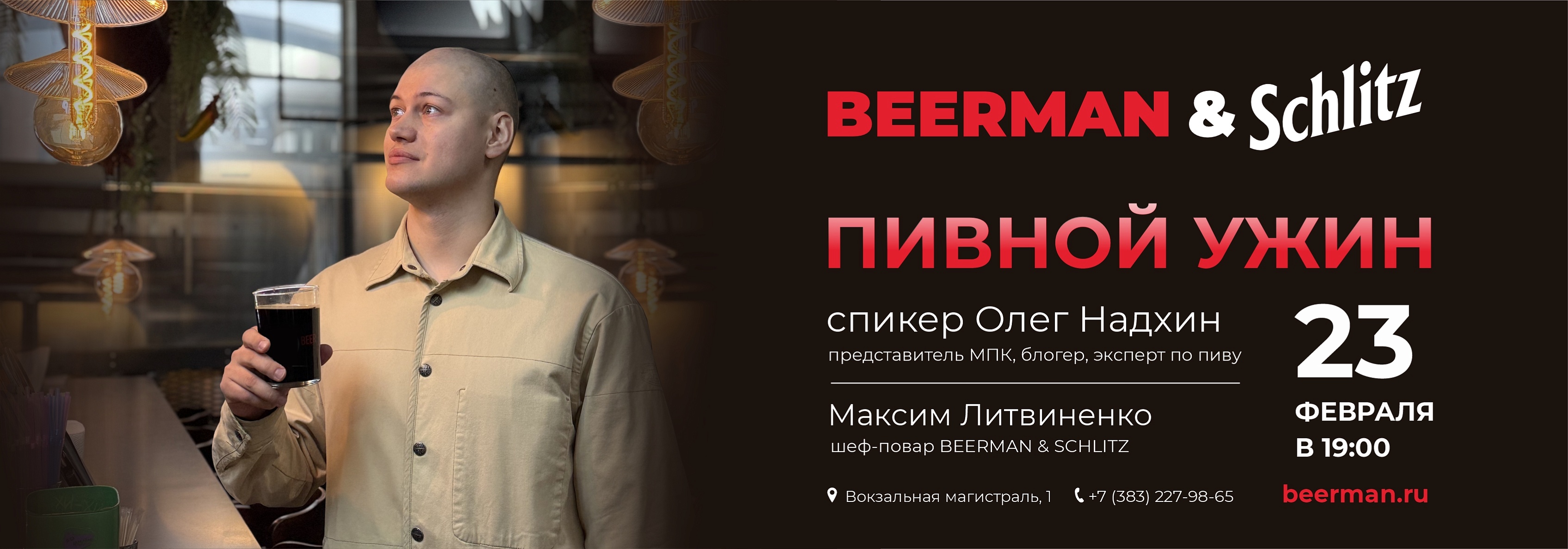 Как и другие заведения под руководством известного сибирского ресторатора Дениса Иванова, BEERMAN – это рестораны, в которых можно получить удовольствие не только от безукоризненной еды, но и от дружественной, приятной атмосферы. Для тех же, кто хочет домашней тишины, у нас есть еда на дом. Вас порадуют не